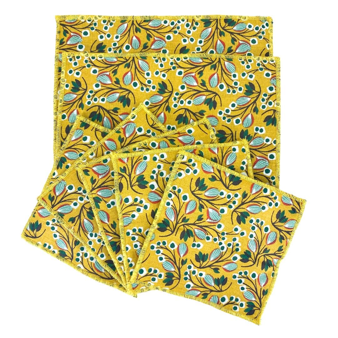 2 lingettes et 5 carrés douceur réutilisable et lavable en Coton et éponge viscose de bambou.